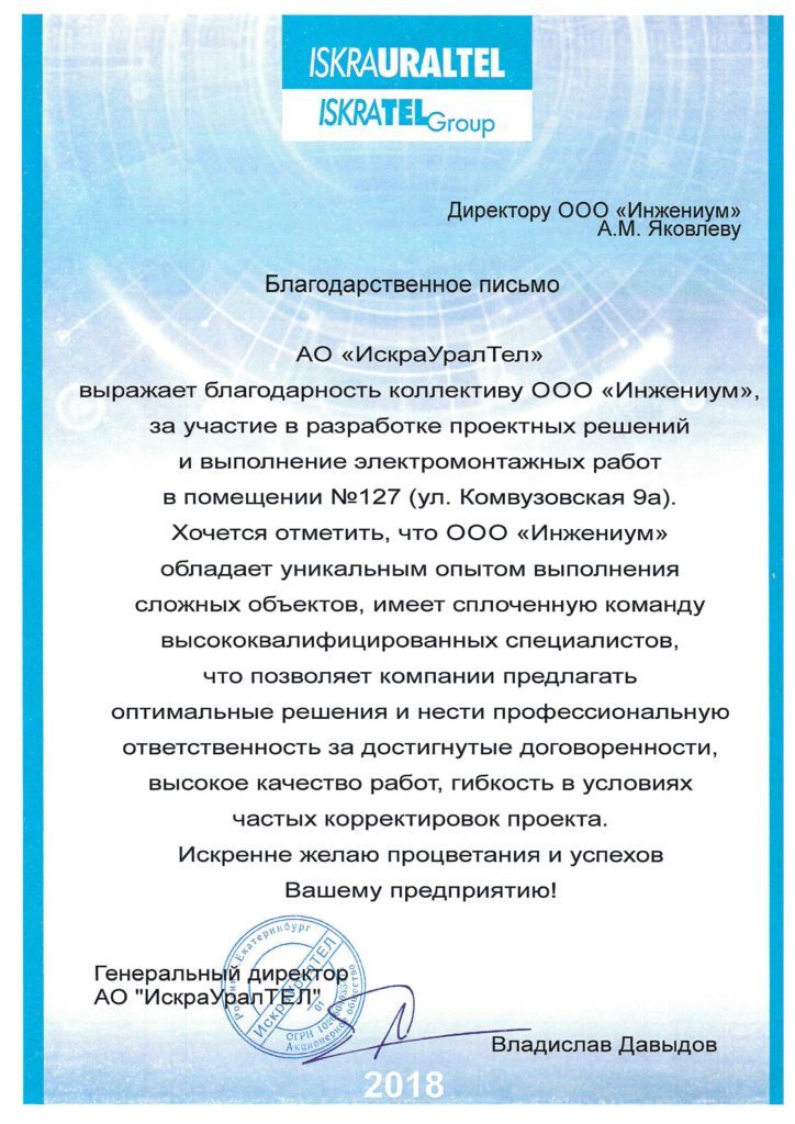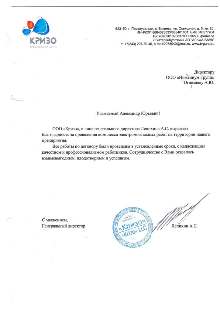 Ознакомитесь с благодарственными письмами в адрес «Инжениум Электро», доверие и репутация для нас не пустые слова.